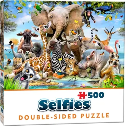 Ett klurigt dubbelsidigt pussel med samma motiv på båda sidorna.