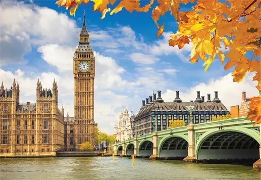I detta motiv ser vi det berömda klocktornet Big Ben i ett London i höstskrud (eller Elizabeth Tower som tornet döptes till 2012, för att markera Elizabeth II diamantjubileum).