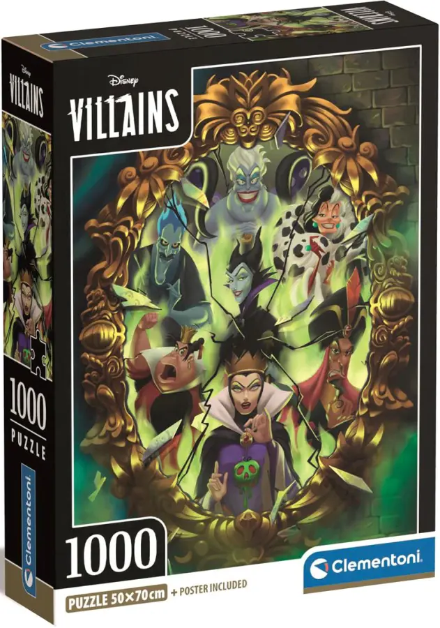 I en trasig spegel med prålig guldram ser vi några av Disneys mest fruktade skurkar, omgivna av en dimma av grön rök. Vilka onda planer de skulle kunna smida tillsammans!