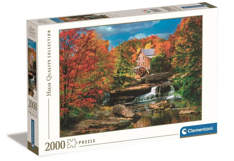 Motivet föreställer Glade Creek Grist Mill, en gammal vattenkvarn vid en bäck i ett skogslandskap under hösten. Kvarnen är omgiven av träd i varma höstfärger och en liten träbro korsar vattnet. Ljuset i bilden är mjukt och förstärker känslan av årstidens övergång. Det är en stillsam scen med många naturliga detaljer.