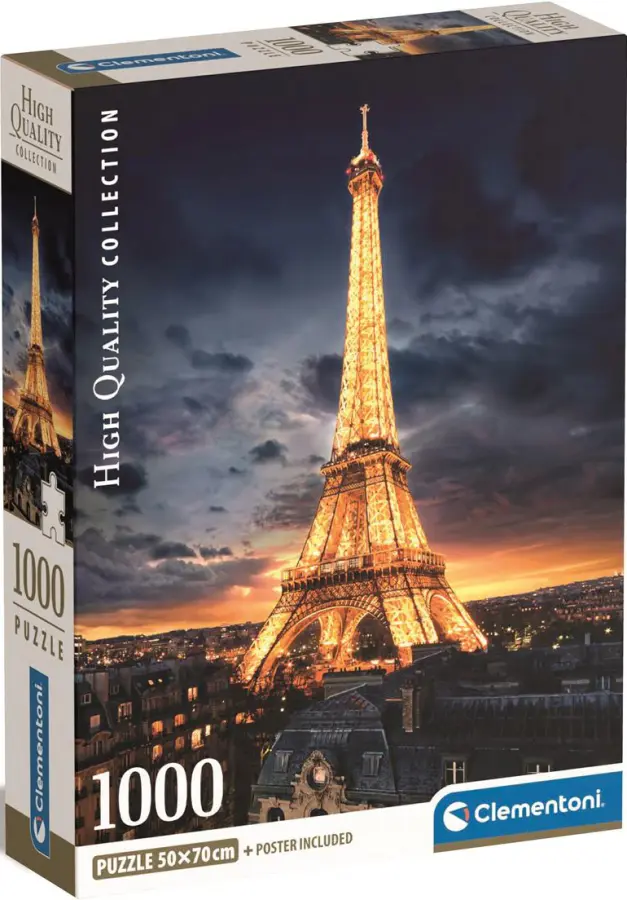 Solen är på väg ner över Paris och mot den blå natthimlen sträcker sig stadens mest kända byggnad, Eiffeltornet, upplyst av tusentalslampor som ger den ett gyllene sken.