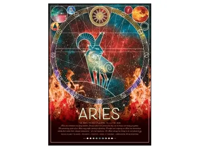Pusselmotivet visar stjärnbildens konstellation, symbol, styrande planet, polaritet, läge och månadssten.