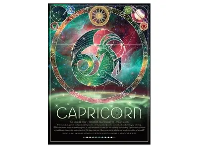Pusselmotivet visar stjärnbildens konstellation, symbol, styrande planet, polaritet, läge och månadssten.