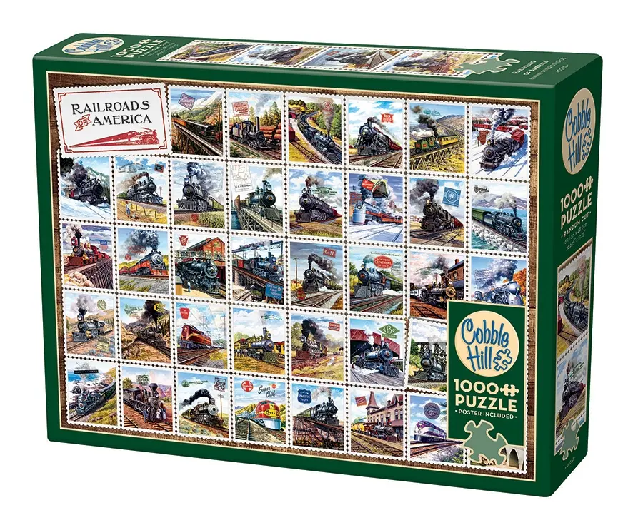 Det perfekta motivet för dig som är intresserad av tåg eller frimärken, eller både och! Ett pussel fullt av tåg från olika tidsepoker och olika håll i världen.