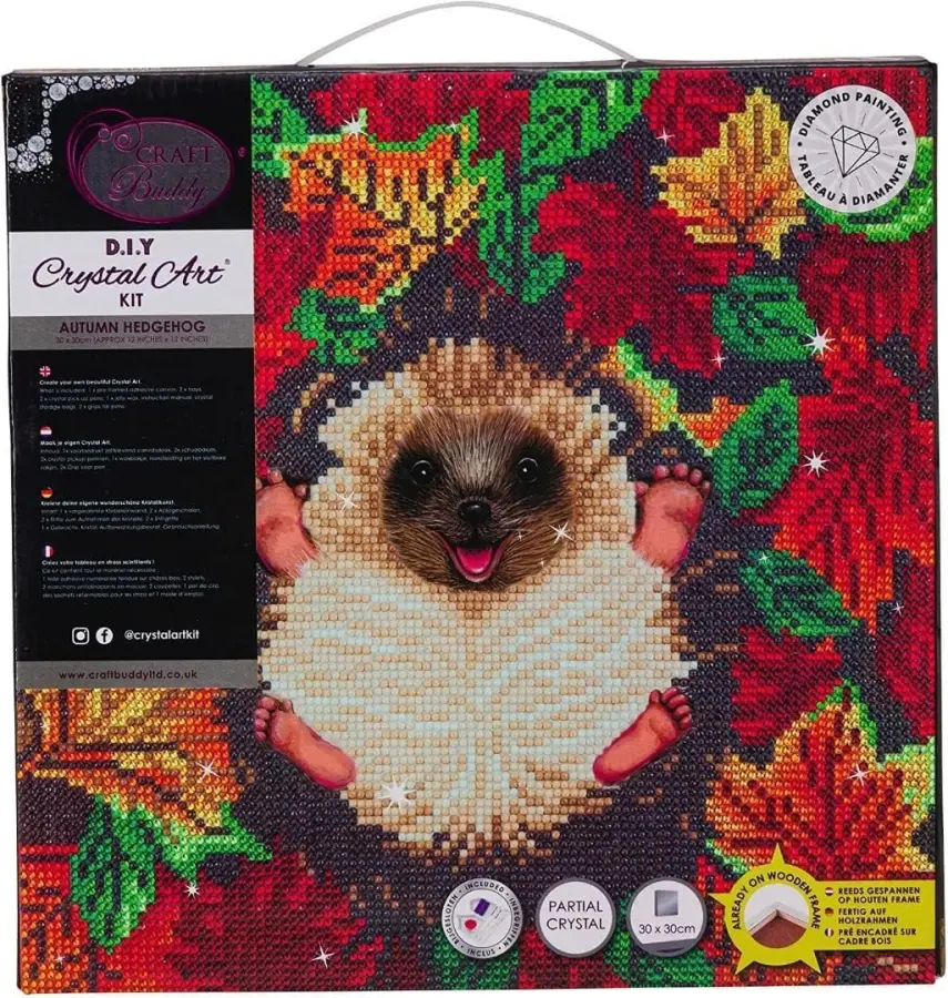 I förpackningen ingår allt du behöver: självhäftande canvastavla med motivet, kristaller, applikatorpennor, extra penngrepp för en mer ergonomisk pennföring, sorteringsbrickor (2st), gelévax, extra zip-påsar och instruktioner.