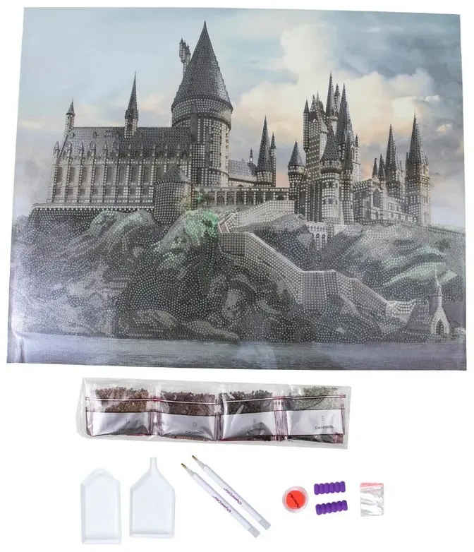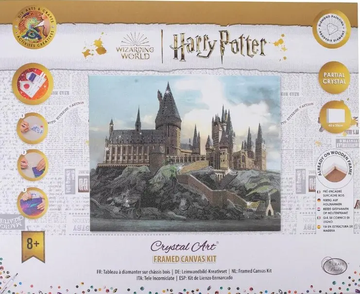 Gör ditt eget inramade Hogwarts från Harry Potter! Klistra på de tillhörande kristallerna och se det vackra slottet växa fram inom den stabila träramen.