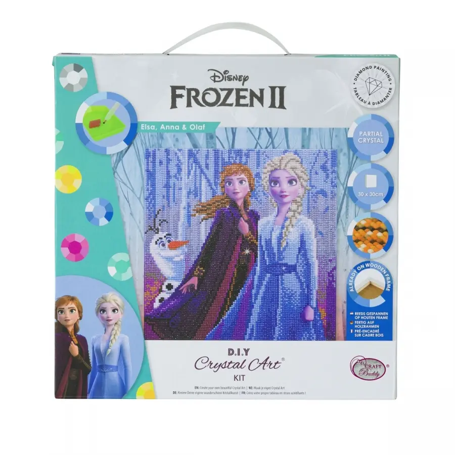 Gör en fin crystal art tavla med Elsa, Anna och Olaf från Frozen II.