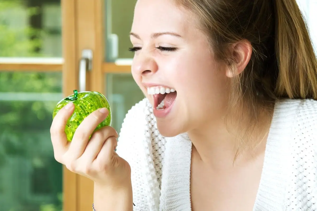 Ett 3D-Kristallpussel i form av ett grönt äpple.