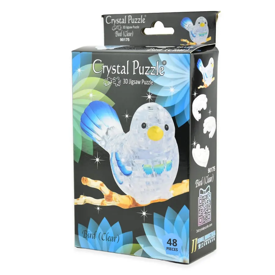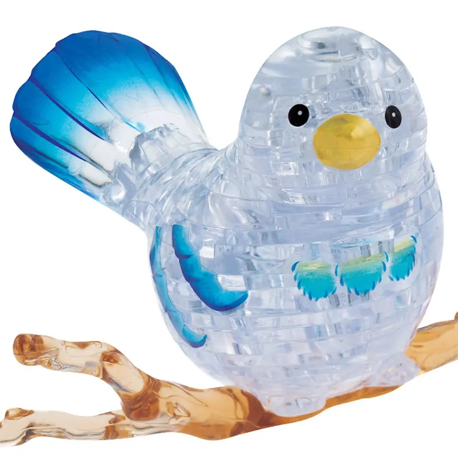 Ett 3D-Kristallpussel i form av en fågel på en gren.