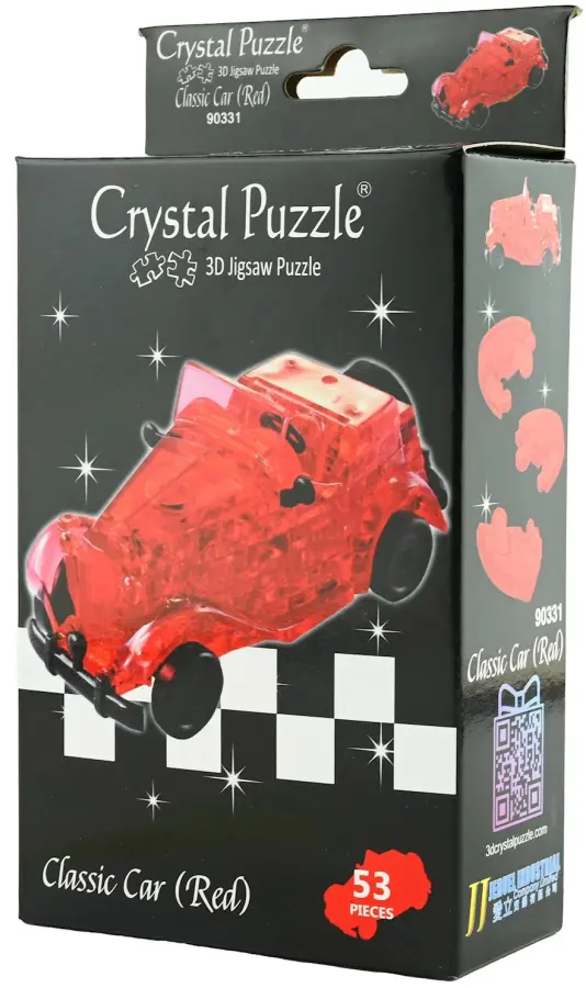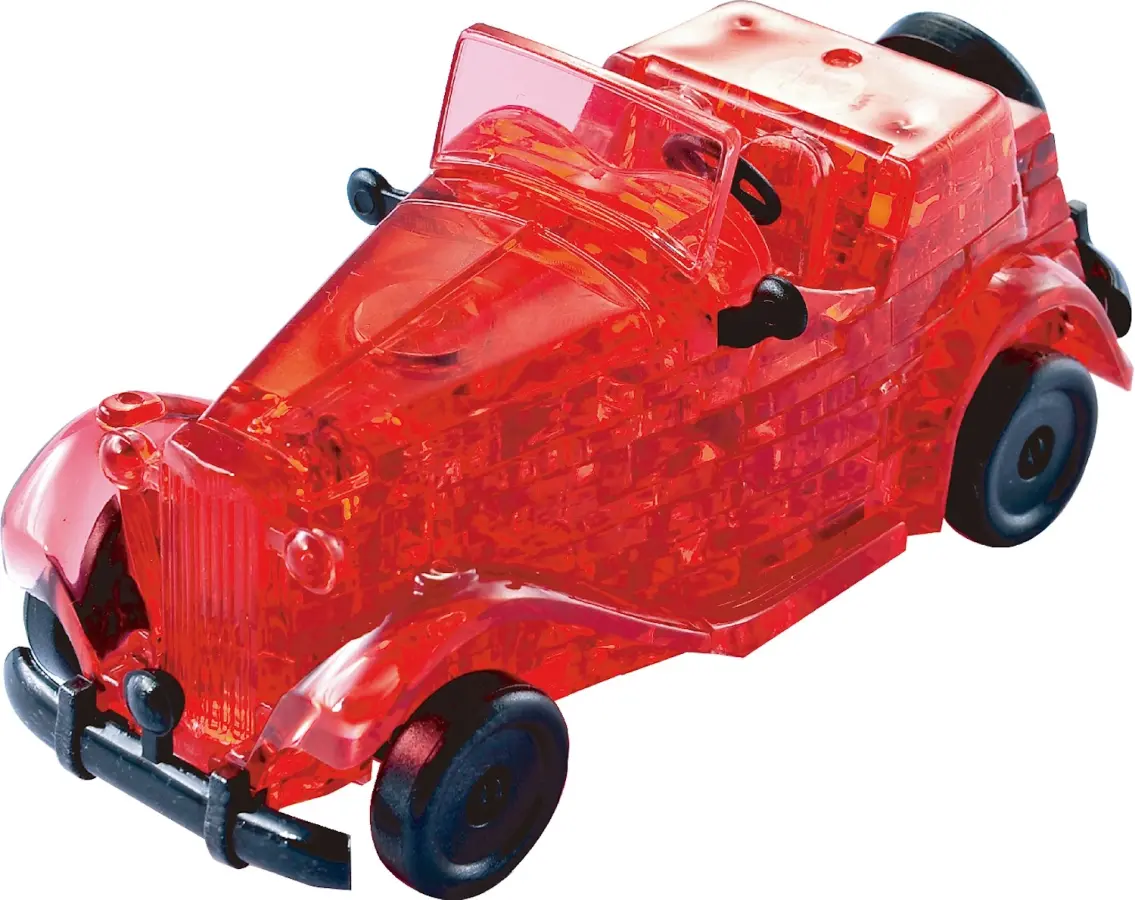 Ett 3D-Kristallpussel i form av en klassisk röd bil.