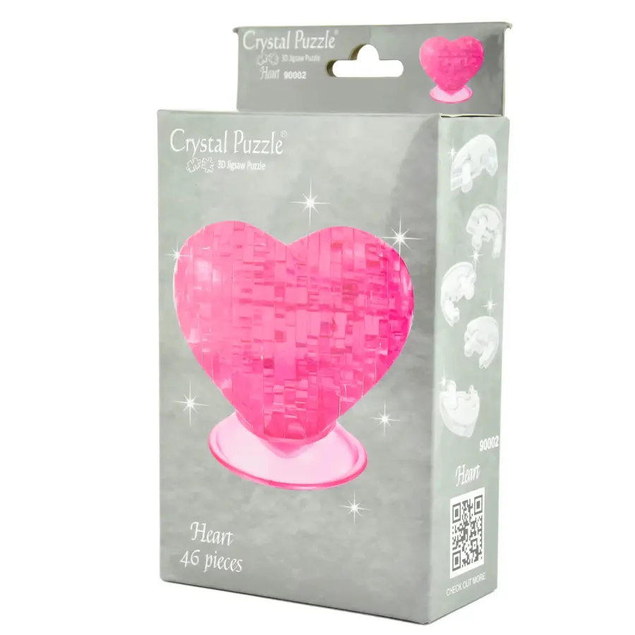 Ett 3D-Kristallpussel i form av ett rosa hjärta.