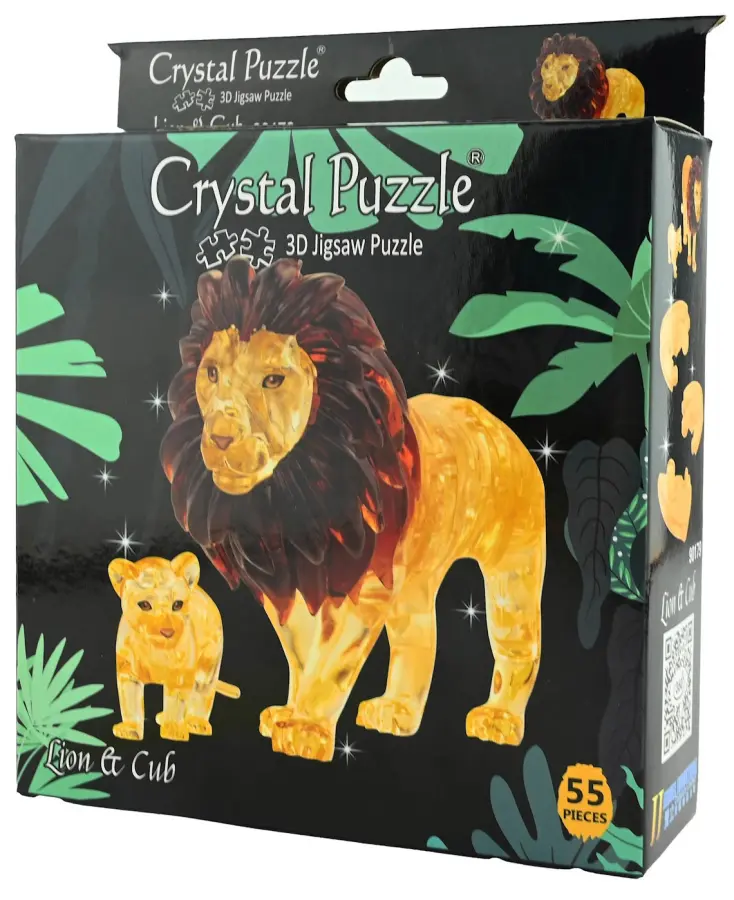 Ett 3D-Kristallpussel i form av en ståtlig Lejonhanne med sin unge.