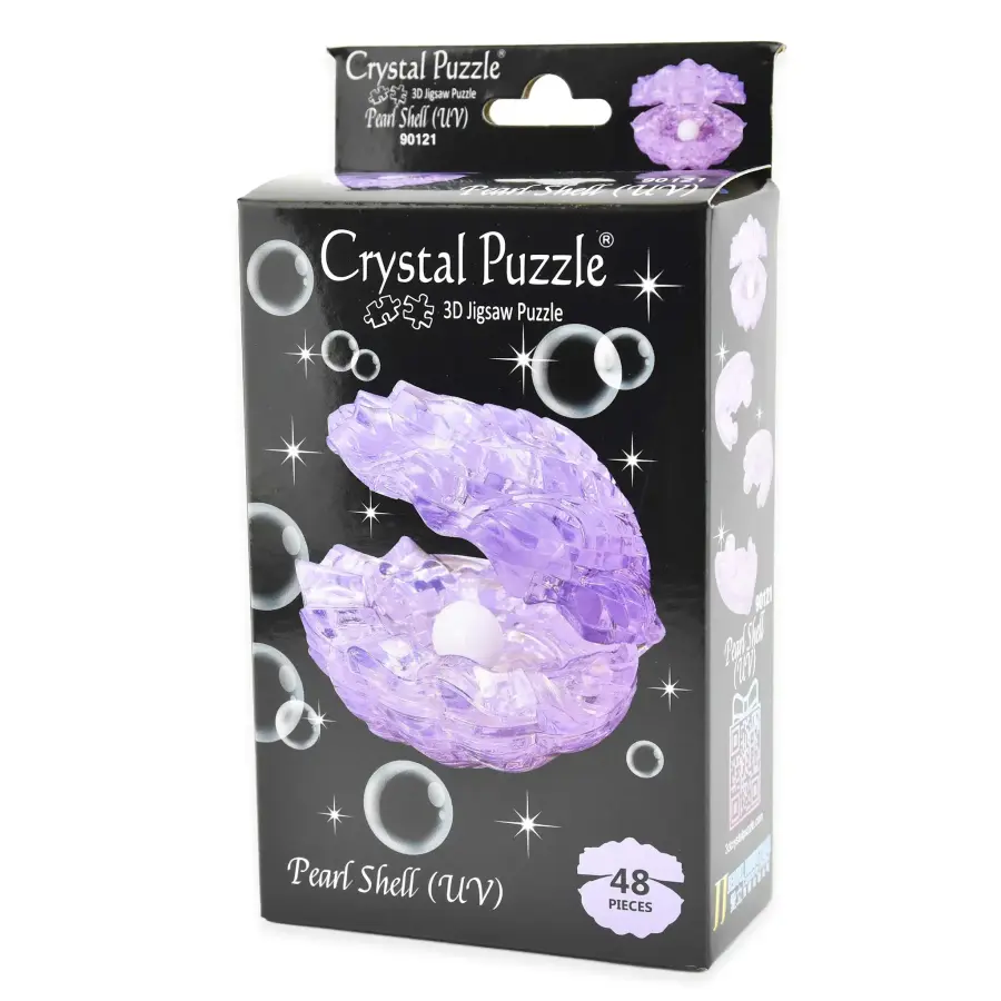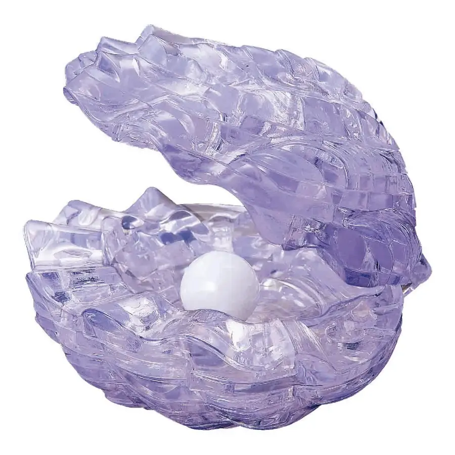 Ett 3D-Kristallpussel i form av en öppen mussla med pärla.