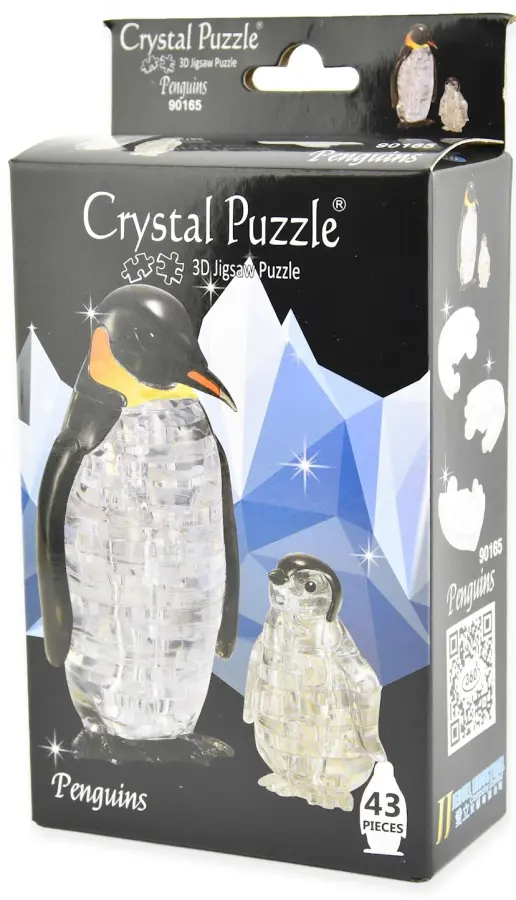 Ett 3D-Kristallpussel i form av en Pingvin med sin unge.