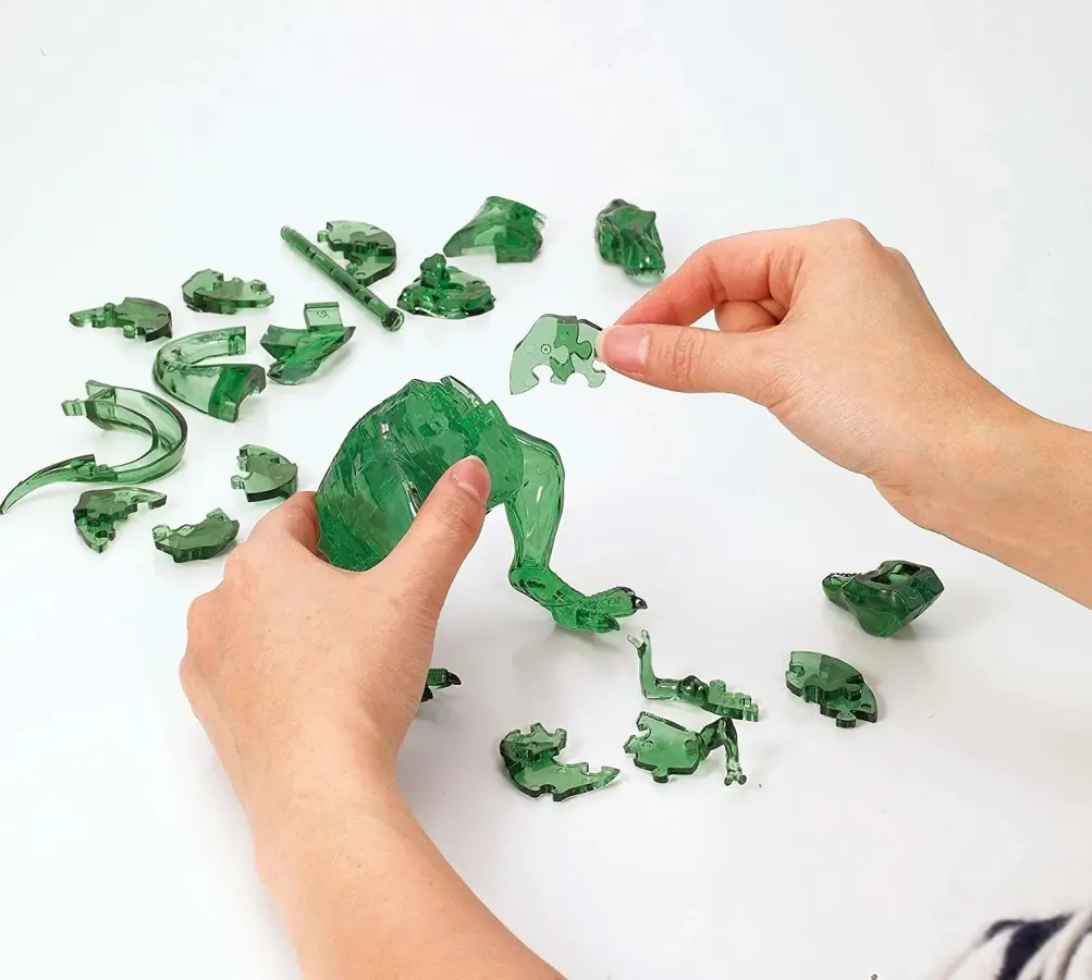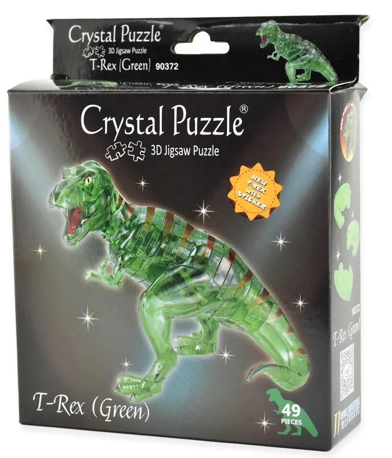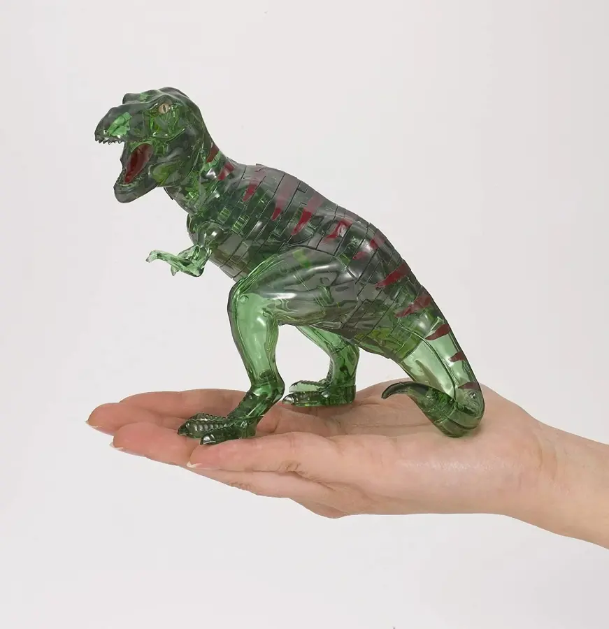 Ett 3D-Kristallpussel i form av en grön T-Rex.