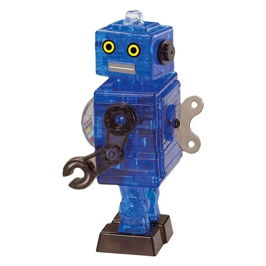 Ett 3D-Kristallpussel i form av en blå Robot.