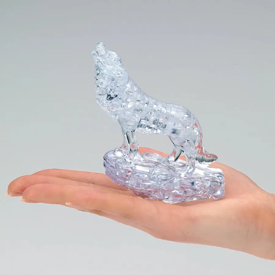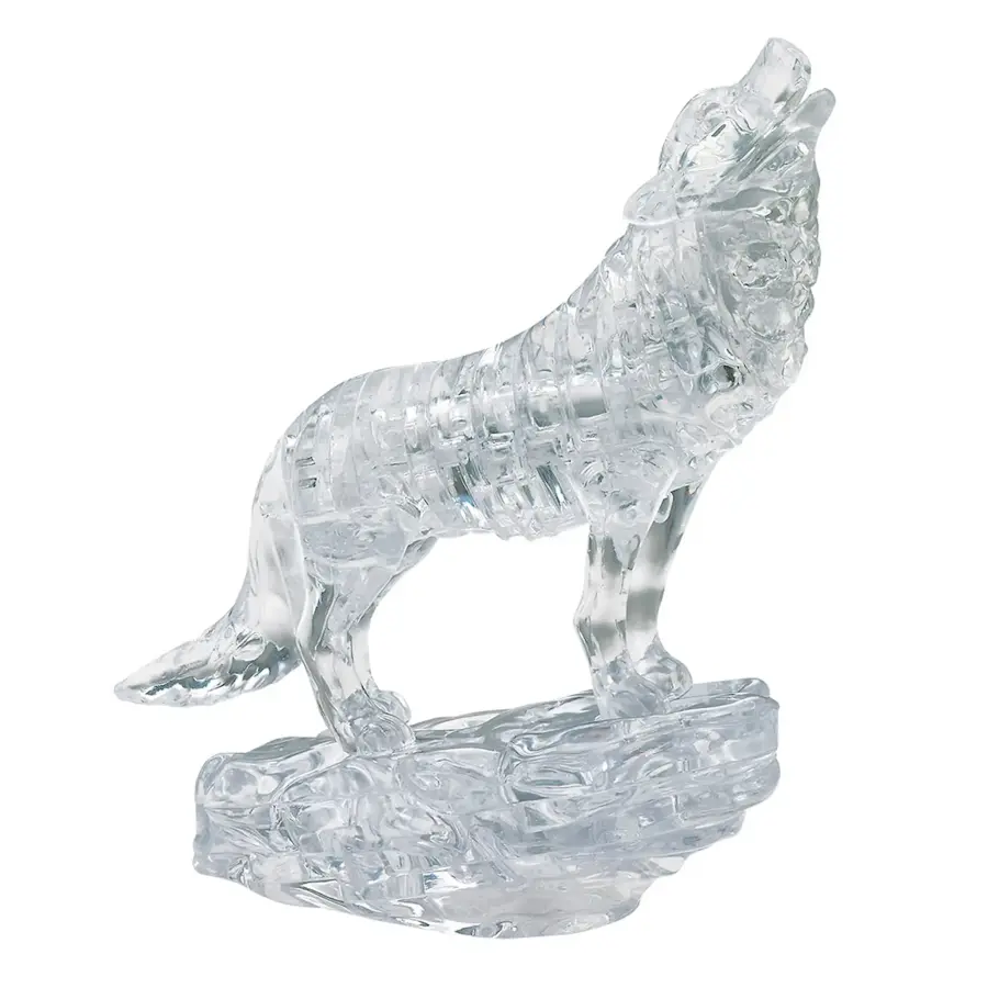 Ett 3D-Kristallpussel i form av en ylande varg.