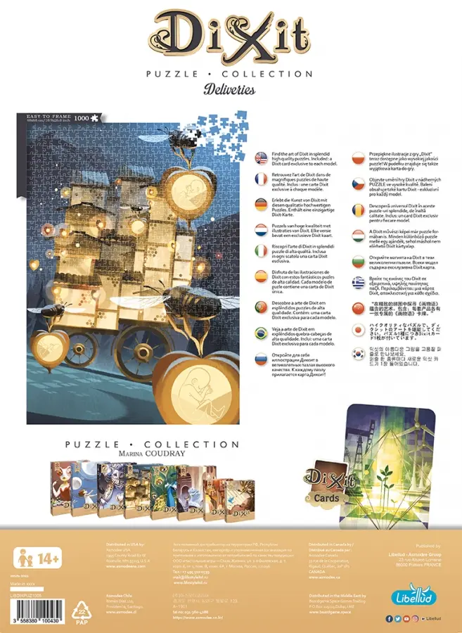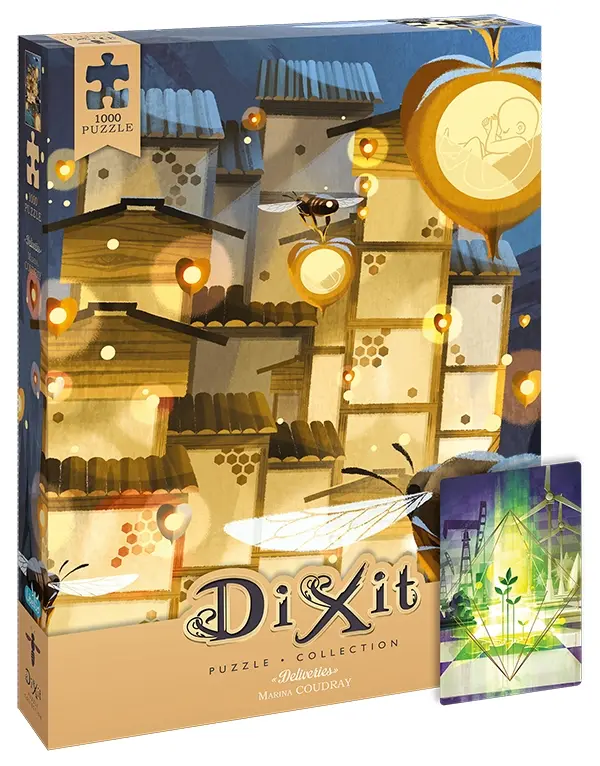 Sedan 2008 har skaparen Jean-Louis Roubira och 12 fantastiska konstnärer skapat över 1000 Dixit Kort till den populära brädspelsserien. 1000-bitars serien använder illustrationer av Marie Cardouat och Marina Coudray från Dixit, Dixit Quest och Dixit Revelations.