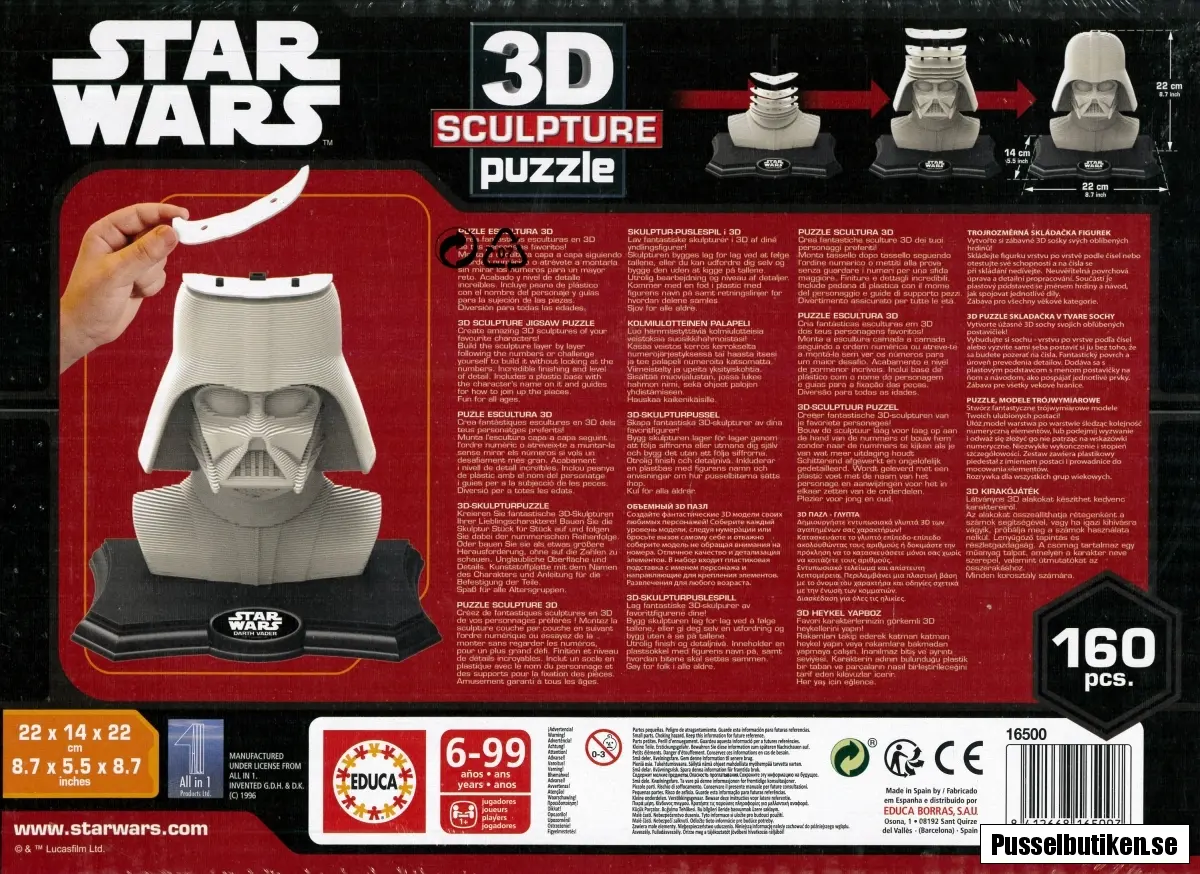 3D-Skulpturpussel där du bygger pusslet lager för lager, antingen genom att följa siffrorna på bitarna eller genom att ge dig själv en extra utmaning och välja att inte titta på siffrorna. En plastbas med figurens namn och anvisningar om hur pusselbitarna sätts ihop är inkluderat. Kul för alla åldrar (6-99 år)!