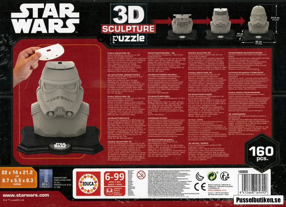 3D-Skulpturpussel där du bygger pusslet lager för lager, antingen genom att följa siffrorna på bitarna eller genom att ge dig själv en extra utmaning och välja att inte titta på siffrorna. En plastbas med figurens namn och anvisningar om hur pusselbitarna sätts ihop är inkluderat. Kul för alla åldrar (6-99 år)!