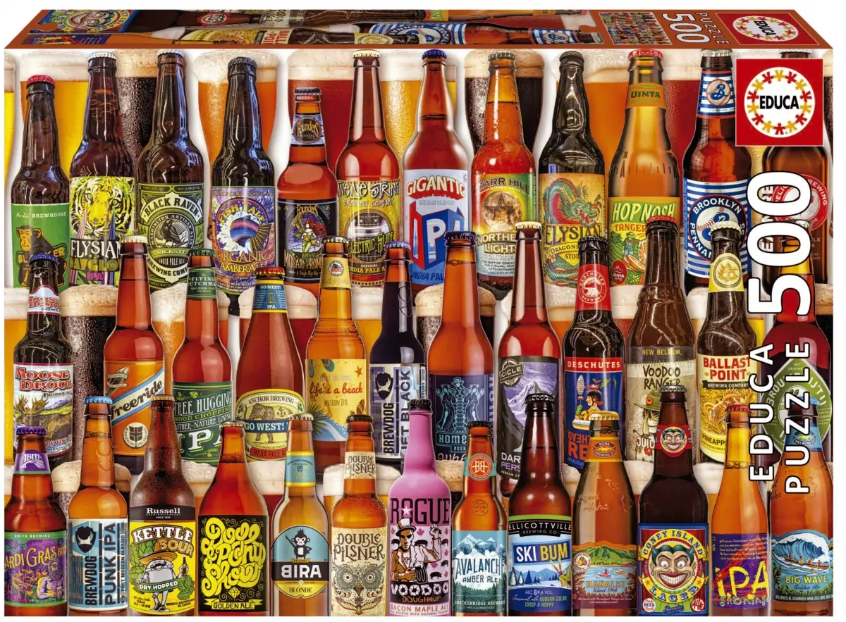 Det perfekt pusselmotivet för dig som gillar öl och då kanske särskilt I.P.A! Här står flaskorna uppradade med spännande etiketter från mer eller mindre välkända producenter och i bakgrunden skymtar kalla ölglas fyllda till bredden.