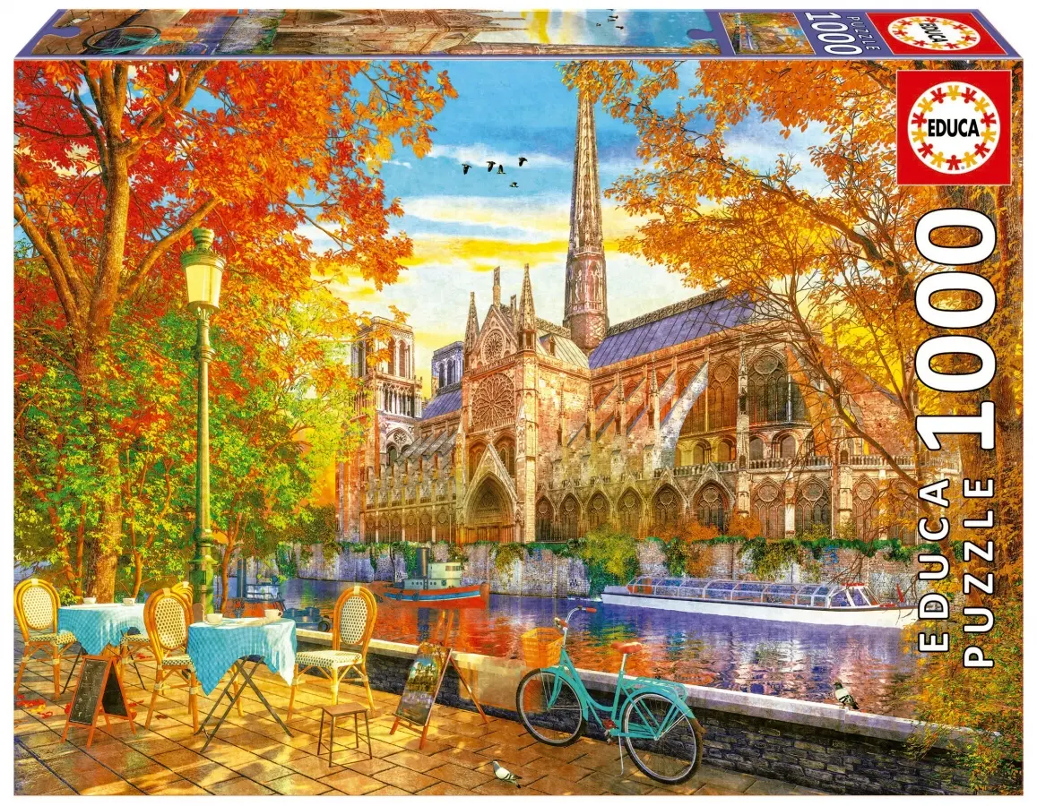 Konstnären Dominic Davison har skapat ett verk som ska avbilda den kända romersk-katolska katedralen Notre Dame under hösten! Katedralen ligger i Frankrikes huvudstad Paris och får många besökare varje år. I detta motiv kan besökarna sätta sig ner för en fika och se den i sin skönhet bland höstfärgerna.