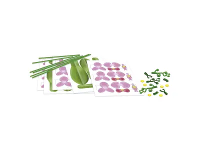 Lådan innehåller alla nödvändiga delar för att skapa din Orkidé från educas blomsterkollektion.
