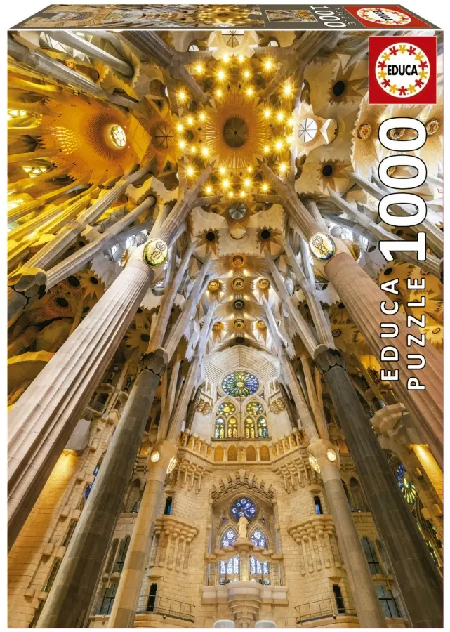 Kyrkan är designad av arkitekten Antoni Gaudí (1852–1926) och finns med på UNESCOs världsarvslista. När Gaudí designade kolumnerna i kyrkan, som når upp mot navet i takens mitt, ville han att de skulle likna träd med trädgrenar som sträcker sig upp mot himlen. I motivet syns också kyrkans fönster med vacker glasmosaik i olika färger, belysning som strålar som stjärnor och skulpturer med religiös symbolik.