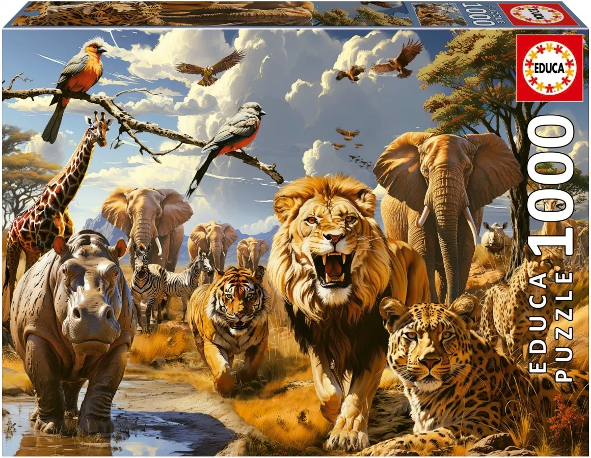 Upptäck skönheten av savannen och några av världens mest majestätiska djur med detta färgglada 1000-bitars pussel från Educa.