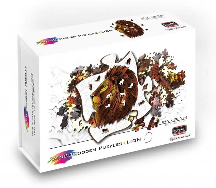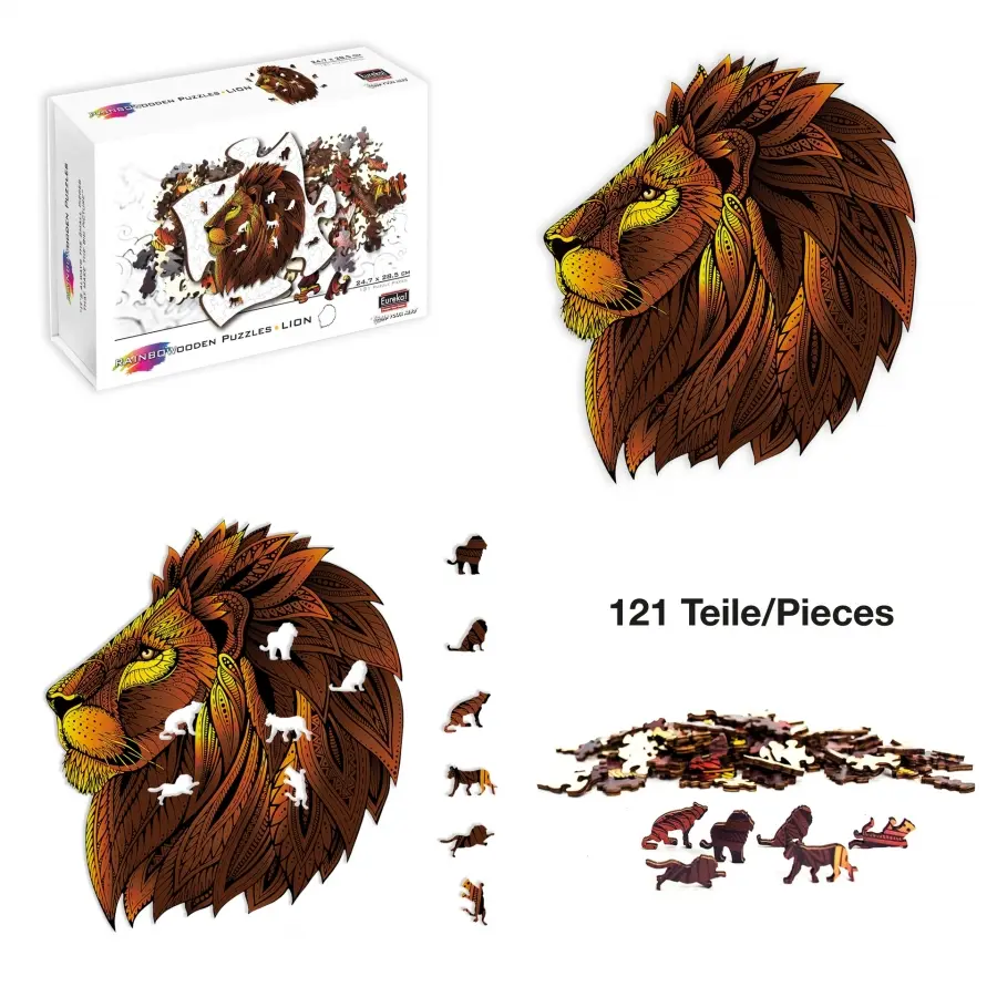 Pusselbitarna är unika och flera av dem har spännande former av djur. I just detta pussel kan du bland annat hitta 6 lejonformade pusselbitar.