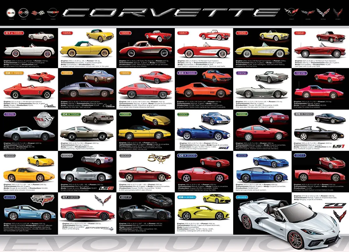 Här kan man njuta av en nostalgisk resa genom varumärket Corvettes livsverk. Från den första generationen C1 som introducerades av General Motors 1953 och fram till den sjunde generationen c7 som introducerades år 2013. Vilken modell är din favorit?