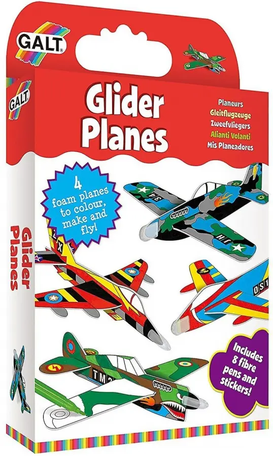 Ditt uppdrag är att montera och dekorera flygplanen. Gör din egen design medhjälp av tuschpennorna och klisterbilder. Allt du behöver finns lådan. Är du klar? Då är det bara att börja leka!