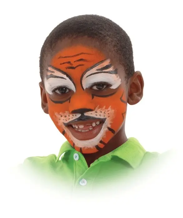 Ansiktsmålning i klara, fina färger av hög kvalitet, perfekt på kalas, maskerad, sportevents och pyjamasparty!