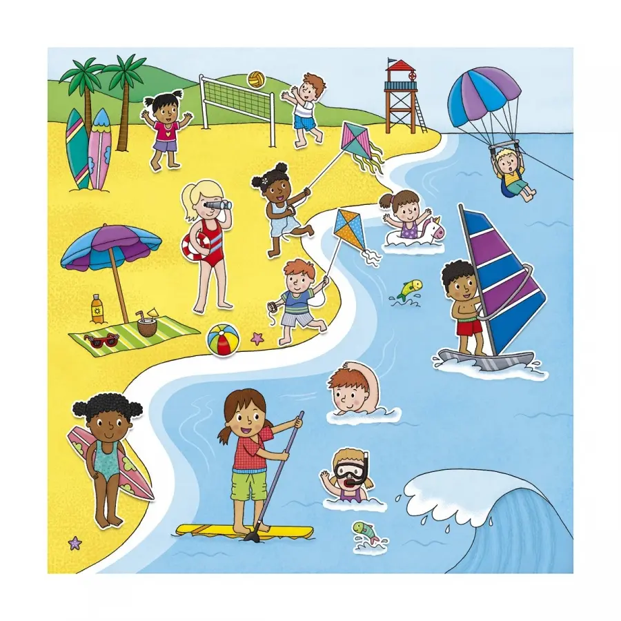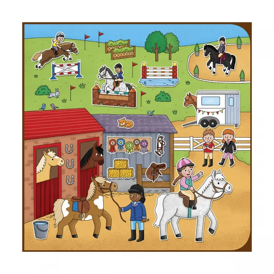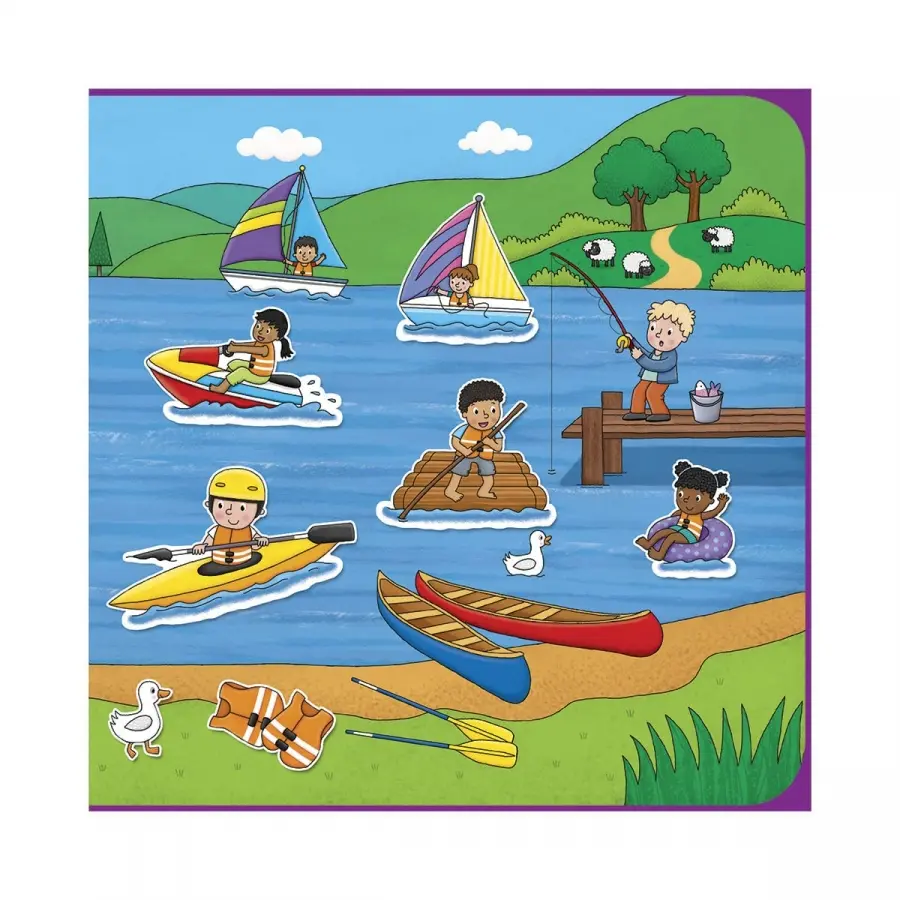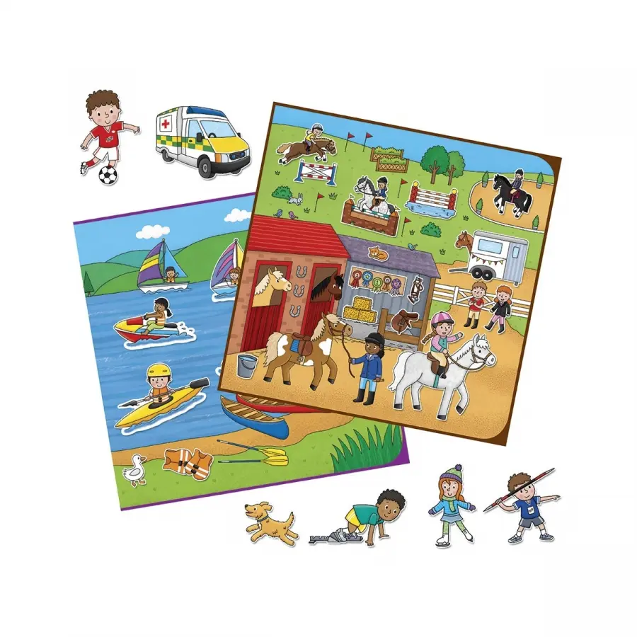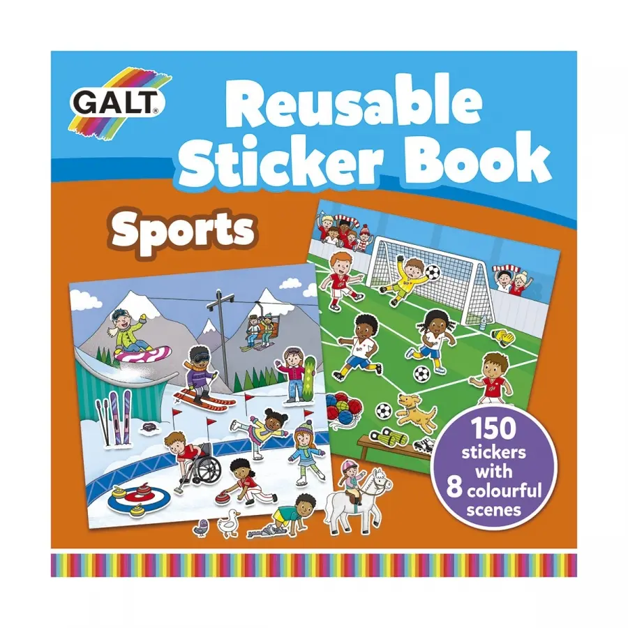 En stickerbok med idrotten som tema. I boken finns det åtta färgglada landskap och 150 klistermärken som man kan använda om och om igen. Perfekt på resan!