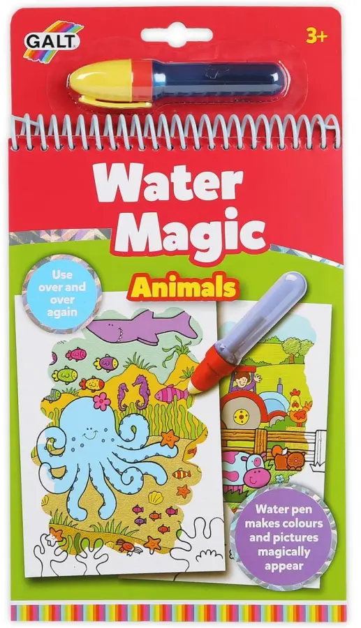 Fyll pennan med vatten och "måla" på någon av de sex målarbilderna i spiralblocket. Se hur färgglada motiv av olika djur i deras miljö på bondgården träder fram på sidorna när du stryker över dem med vattnet. När vattnet torkat blir bilderna färglösa igen och det går att måla om och om igen. Perfekt på resan!