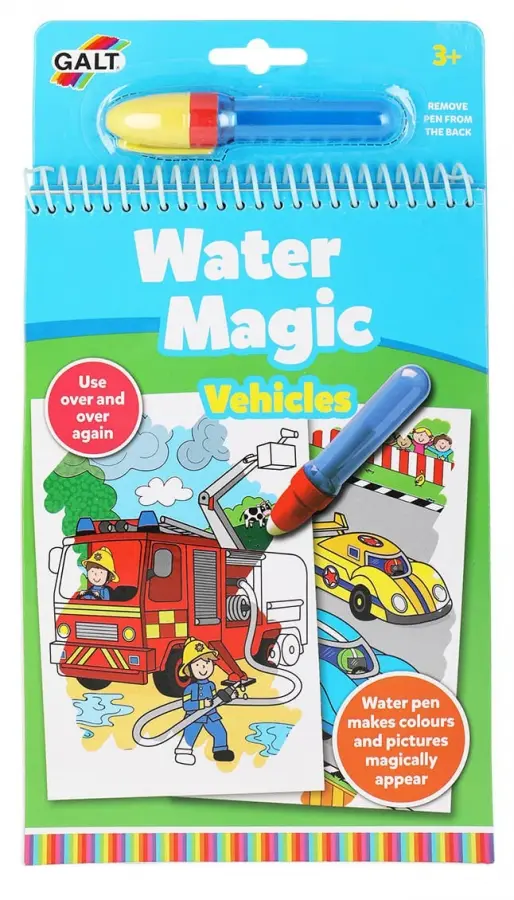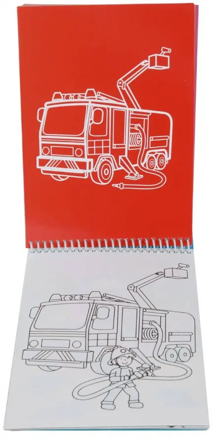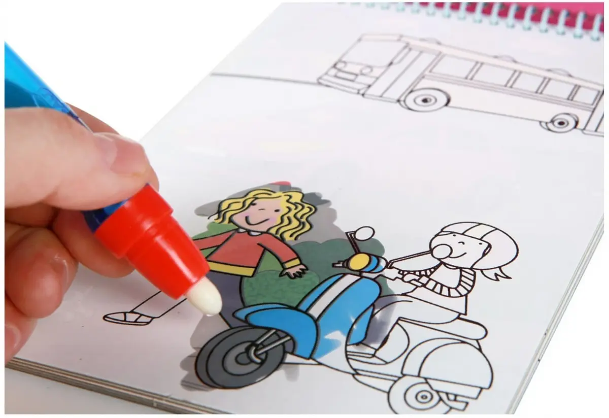 Fyll pennan med vatten och "måla" på någon av de sex målarbilderna i spiralblocket. Se hur färgglada motiv av olika djur i deras miljö på bondgården träder fram på sidorna när du stryker över dem med vattnet. När vattnet torkat blir bilderna färglösa igen och det går att måla om och om igen. Perfekt på resan!