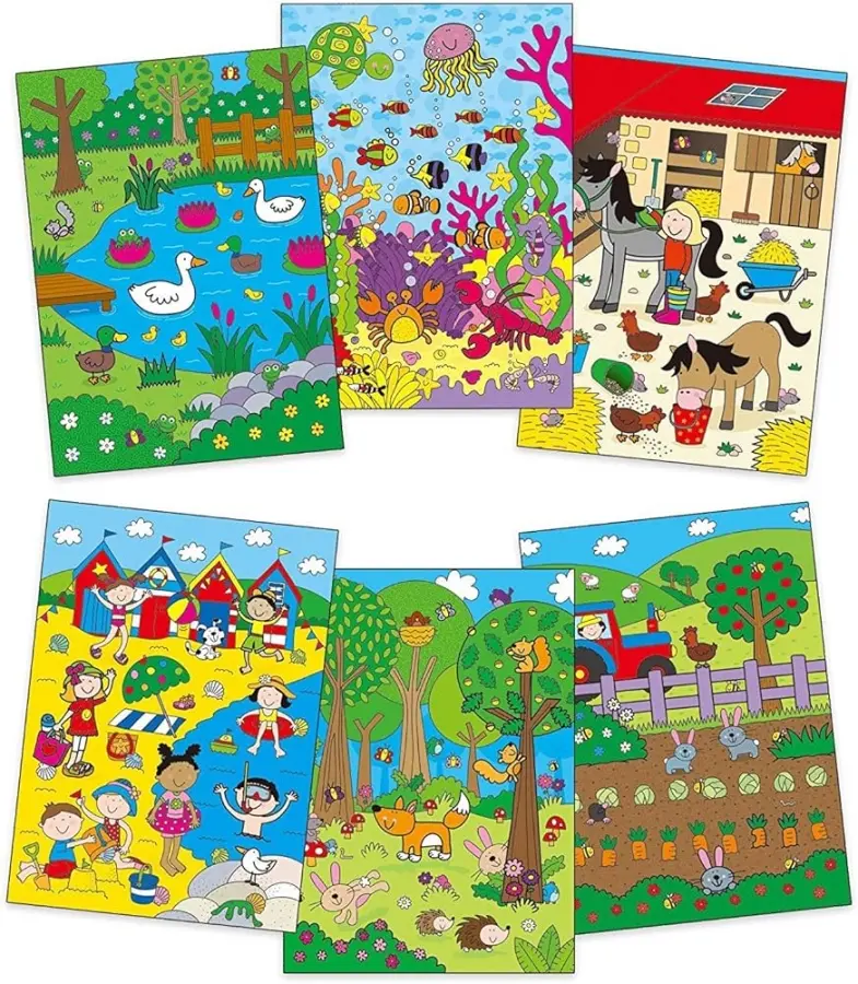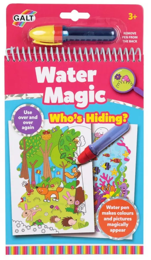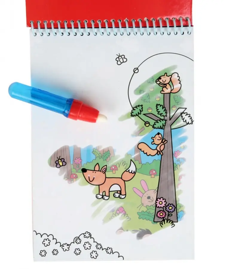 Fyll pennan med vatten och "måla" på någon av de sex målarbilderna i spiralblocket. Se hur färgglada bilder från skogen, bondgården och havet träder fram på sidorna när du stryker över dem med vattnet. När vattnet torkat blir bilderna färglösa igen och det går att måla om och om igen. Perfekt på resan!