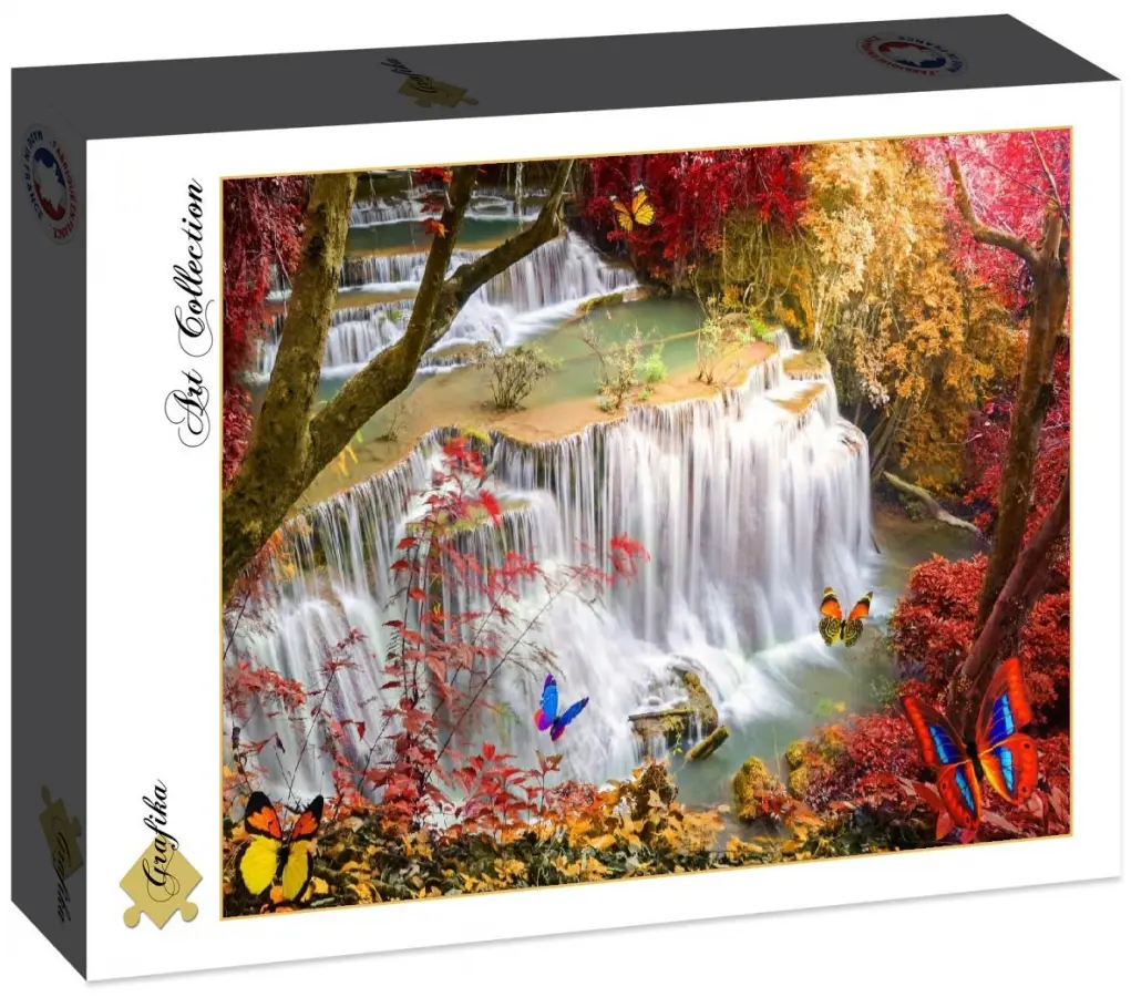 Vackert naturmotiv i höstfärger med vattenfall där fjärilarna trivs.