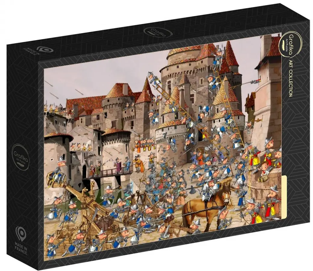 I det här pusselmotivet kastar humortecknaren Francis Ruyer oss rakt in i ett slagfält. Slottet attackeras av fienden och alla har tagit till vapen. Katapulten är framkörd och fienden försöker klättra på stegar upp för slottstornen med pilar vinande om öronen.