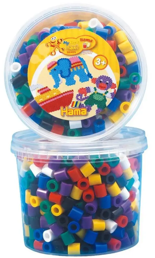 En burk med 600st Maxi-pärlor i olika basfärger.