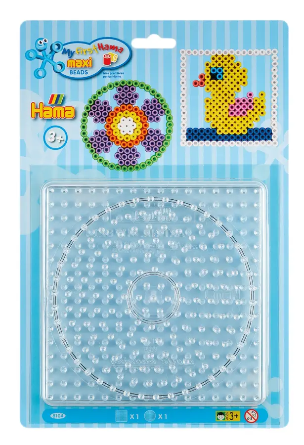 Stora pärlplattor som passar för Maxi-pärlor, perfekt för lite yngre barn. I förpackning ingår en stor kvadrat och en cirkel.