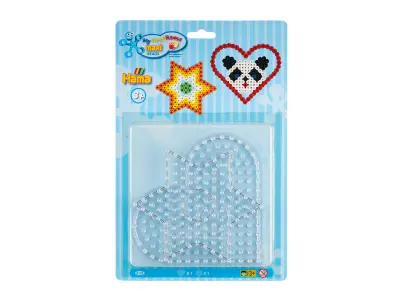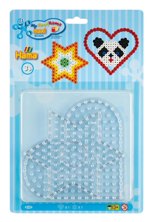 Stora pärlplattor som passar för Maxi-pärlor, perfekt för lite yngre barn. I förpackning ingår en stor stjärna och ett hjärta.