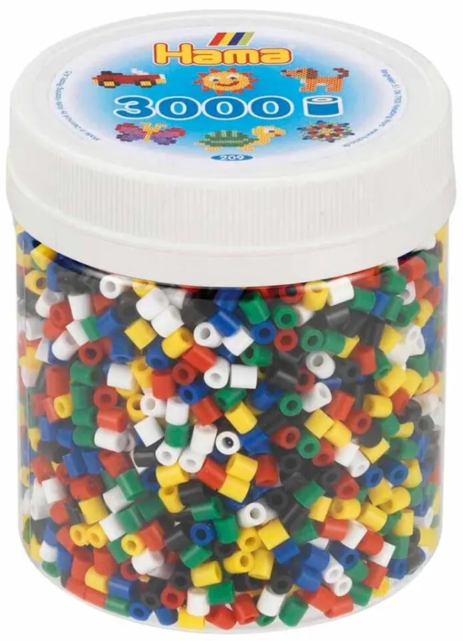 En burk med 3000st Midi-pärlor i en härlig blandning av transparenta färger.