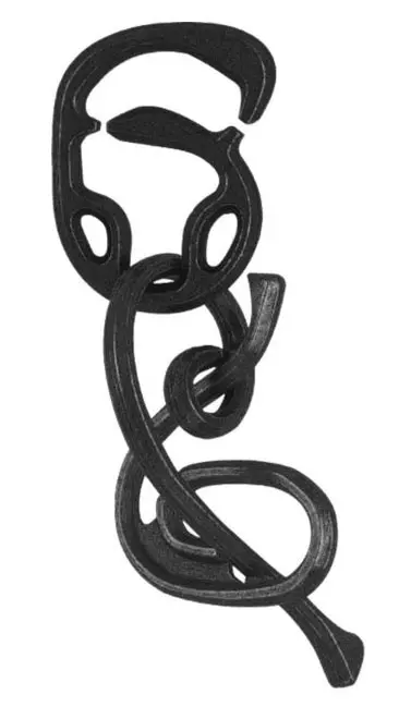 Den här modellen heter Enigma och är ett av Huzzle (f.d. Hanayama) absolut svåraste pussel. Det blev patenterat i USA 1975 och är skapat av Eldon Vaughn.