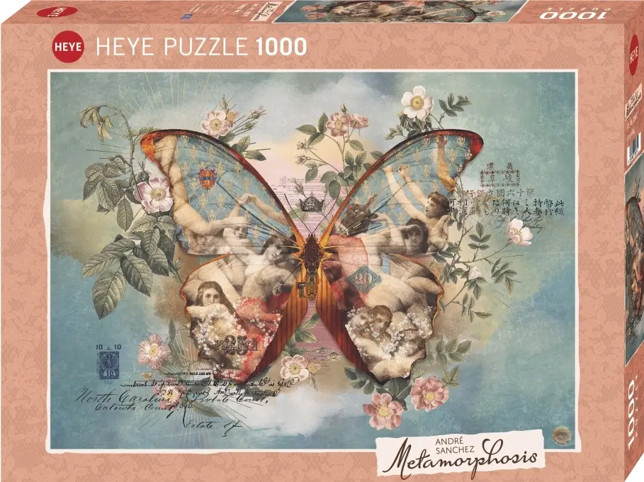 Den franske konstnären André Sanchez har ägnat en hel rad motiv åt ämnet transformation, vilket kan fascinerar både vid första och sandra anblicken. I detta motiv ser vi ett kollage med en fjäril omgiven av rosor, text på olika språk och människokroppar i svartvitt.