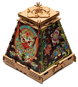 Avslöja Aztekernas mysterium med denna dekorerade pyramid i trä, en kombination av pussel och Escape room!