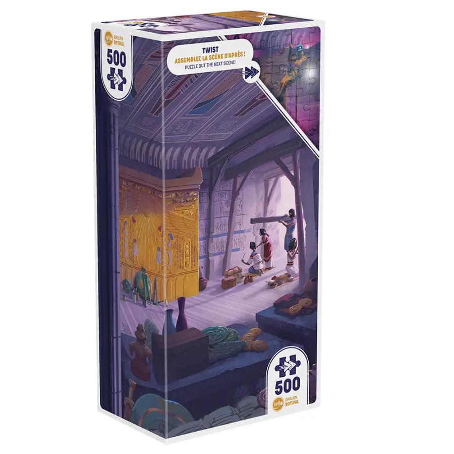 Sätt dig i framtidens tidsmaskin, och ta reda på vad som hänt med denna anrika gravkammare några hundra år framåt i tiden. Genom att lägga pusslet kommer du att kunna återupptäcka denna heliga plats i toner av lila. Föreställ dig de olika etapper som präglat historien, och se ett nytt landskap växa fram för varje pusselbit. En extra stor pusselutmaning för modiga och nyfikna pusslare!