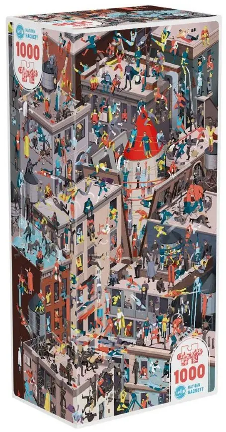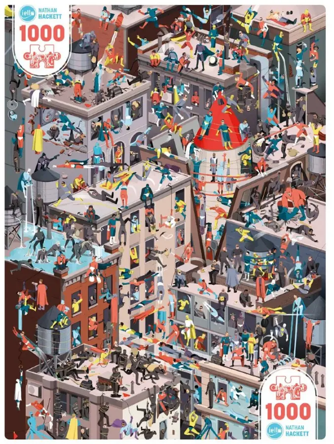 Bekanta dig bit för bit med superhjältar och skurkar för att upptäcka omfattningen av kaoset, och njut sedan av att sätta ihop allt till ett magnifikt kollage. Illustrationen skapades av Nathan Hackett 2021 för spelet "Last Message", en konstnär som fascinerats av superhjältar sedan barndomen.