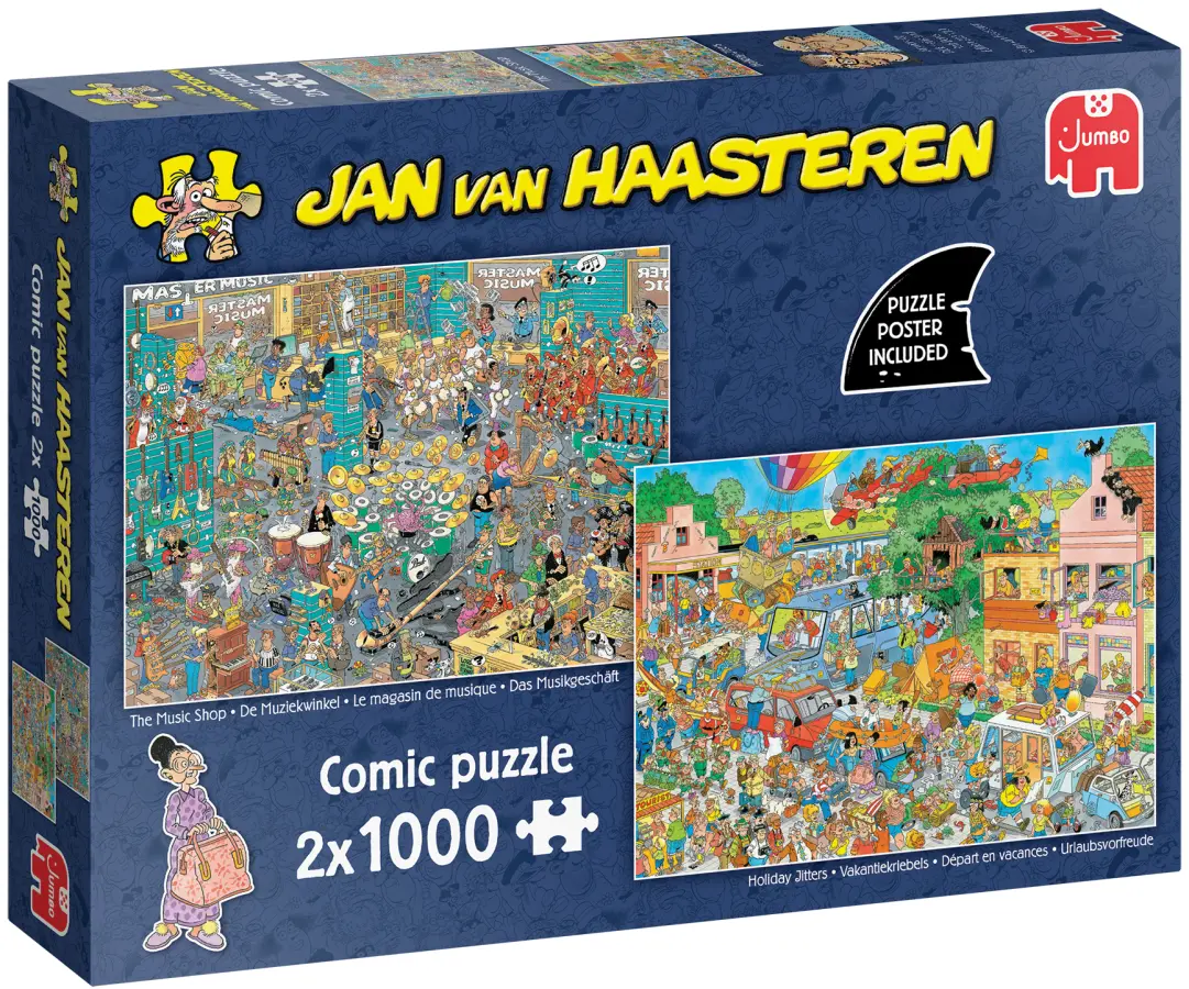 Eller lägg pusslet ”Holiday Jitters” där varje familjemedlem i Jan van Haasteren-familjen har sitt eget sätt att tillbringa semestern.