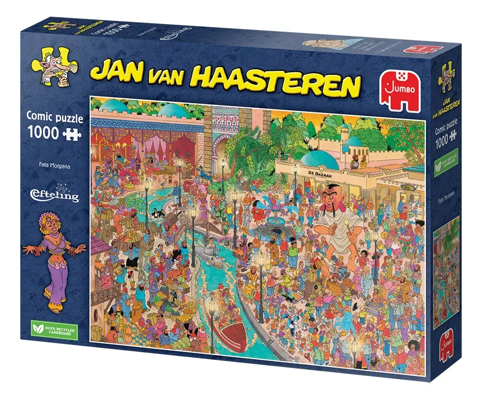 I det här folkmyllrande motivet tar Jan Van Haasteren teamet med oss till temaparken Efteling, och parkens Fata Morgana område.